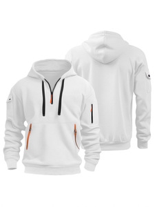 跨境新款连帽衫大码男士卫衣秋冬休闲手臂多拉链加绒连帽衫卫衣