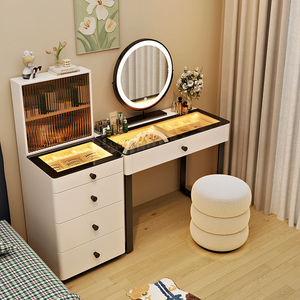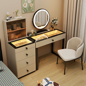 奶油风主卧全实木全景氛围灯梳妆台现代简约化妆桌斗柜收纳一体