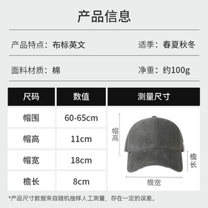 加大头围棒球帽子男加深帽子显脸小韩版布标半硬顶宽帽檐鸭舌帽女