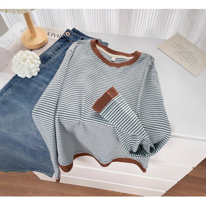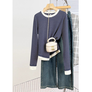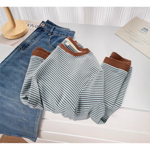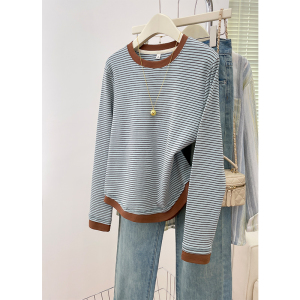 2025春秋新款假两件拼接长袖打底衫微胖mm大码女装不规则显瘦T恤