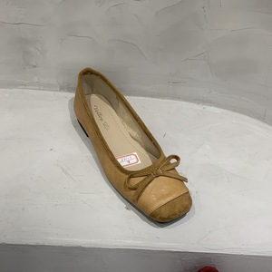方头浅口平底单鞋女瓢鞋2025年新款小香风蝴蝶结软皮豆豆芭蕾舞鞋