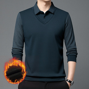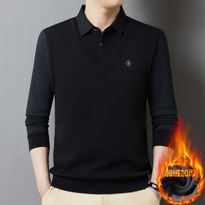 直播爆款一件代发加厚加绒秋冬季翻领长袖商务压标假两件Polo衫