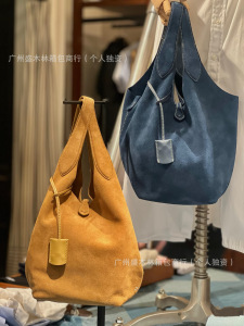 2025拉夫老钱风磨砂麂皮菜篮子跨境大容量复古水桶包手提斜挎女包
