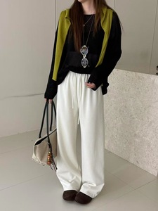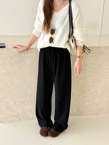 2025秋季新款韩系休闲百搭松紧腰宽松显瘦弹力糯米裤垂感直筒裤女
