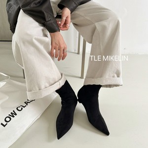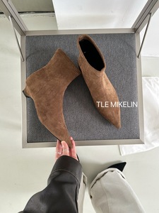 秋冬季软底弹力瘦瘦靴尖头细跟靴子女短靴小跟百搭黑色绒面单靴