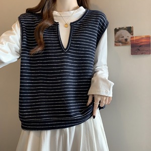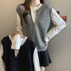 大码条纹假两件长袖T恤女秋季宽松显瘦百搭减龄撞色上衣