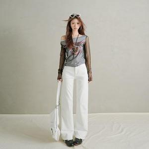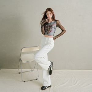 2025秋季新款&超超柔软面料三防白色弹力高中腰显瘦直筒牛仔裤女