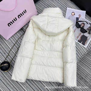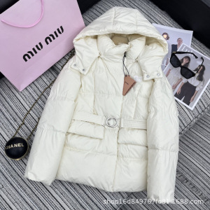 24秋冬新款字母印花束腰腰带连帽90白鸭绒羽绒服外套