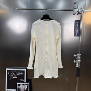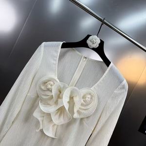 法式优雅气质立体花朵装饰长袖连衣裙小众设计感