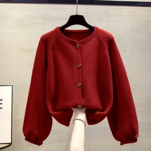 山力达迪圆领毛衣外套女2025秋冬新款宽松慵懒风外穿加厚上衣洋气