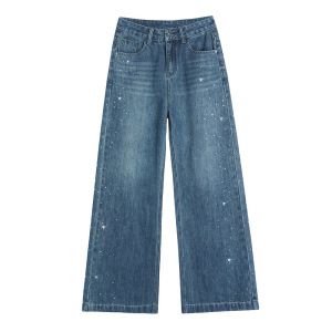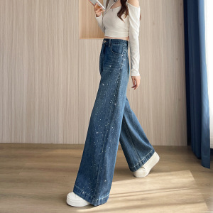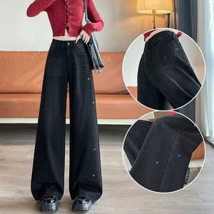 烫钻牛仔裤女2025新款复古高级感高腰宽松显瘦垂感时髦直筒阔腿裤