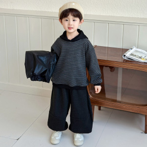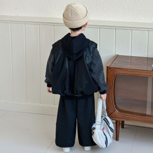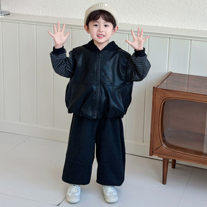 男童秋装皮马甲三件套洋气男宝宝春秋潮酷套装儿童装韩系卫衣卫裤