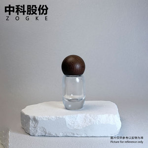 15ml透明圆润厚底瓶配胡桃木球;玻璃;空白瓶