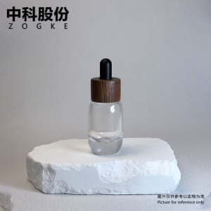 15ml透明圆润厚底瓶配胡桃木圈+亚黑胶头;玻璃;空白瓶