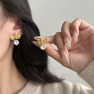 法式轻奢立体玫瑰花复古耳环前后两戴小众设计耳钉时尚百搭耳饰女