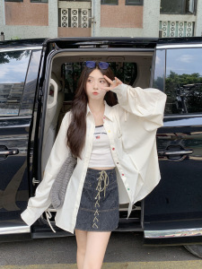 大码长袖衬衫外套女秋季新款设计感小众休闲宽松显瘦上衣洋气遮肉