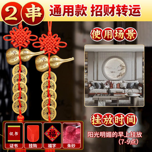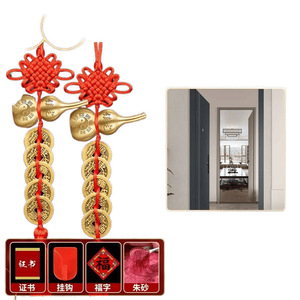 五帝钱门对门铜葫芦真品纯铜摆件大门卫生间人财两旺吉祥结挂件
