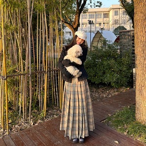 早秋韩系氛围感穿搭套装女秋季牛仔外套格子半身裙