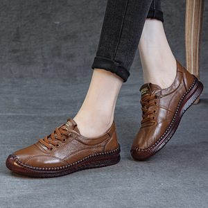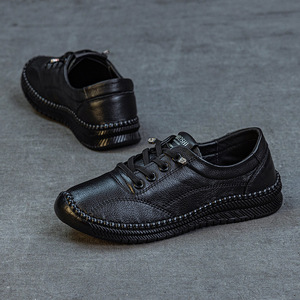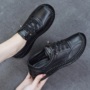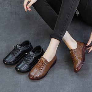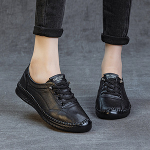 头层牛皮牛筋防滑软底妈妈鞋春秋季新款平底新款休闲中老年女皮鞋