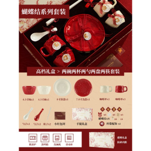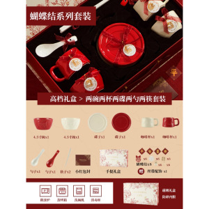 【锦盒装】红白混搭蝴蝶结餐具11件套—(2杯2碗2碟)