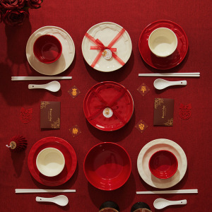 结婚喜庆陶瓷碗碟套装锦盒装家用盘子碟子餐具组合高级感伴手礼品