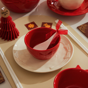 【锦盒装】红白混搭蝴蝶结餐具11件套-(6碗2盘)