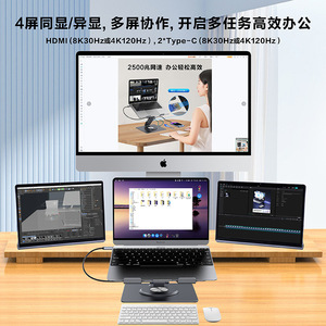 新款铝合金笔记本电脑支架多功能12合1扩展坞可旋转增高散热投屏
