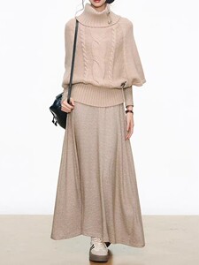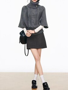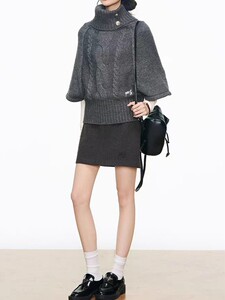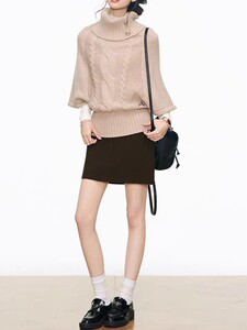 跨境大码高领秋冬蝙蝠衫七分袖银扣刺绣针织衫外套宽松慵懒毛衣女