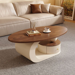 中古风轻奢胡桃色茶几客厅家用椭圆形茶桌组合简约现代设计师新款