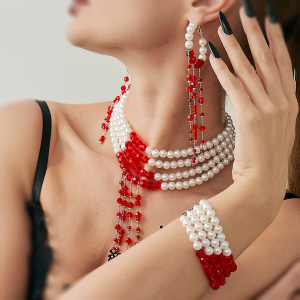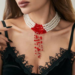 欧美甜酷哥特滴血流苏choker项圈 万圣节个性串珠颈链跨境项饰品