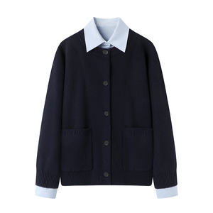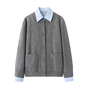 2025年秋季新款女装通勤简约休闲拼接衬衫针织开衫毛衣MBE3CART11