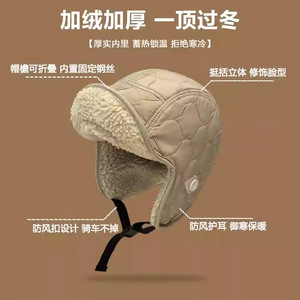 雷锋帽男女冬季加厚羊羔毛双面戴护耳帽户外保暖滑雪骑车飞行员帽