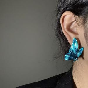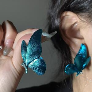 「暗夜精灵」森系超仙蝴蝶水钻耳钉高级感精致耳环渐变蓝冰耳饰品