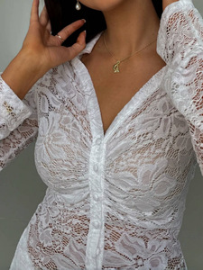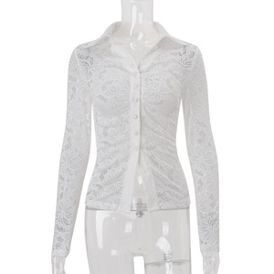 亚马逊女装2025秋季新款时尚翻领单排扣开衫提花蕾丝气质长袖上衣