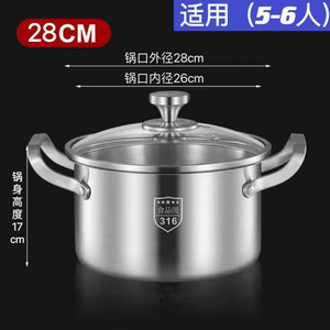 德国316不锈钢汤锅加厚家用蒸锅煮粥锅炖锅双耳燃气灶电磁炉