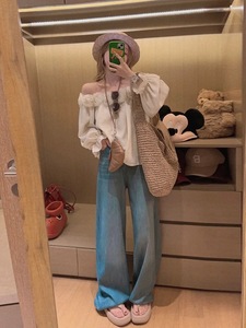 浅蓝高腰牛仔裤女秋季2025宽松直筒复古百搭显瘦垂感阔腿加长裤子