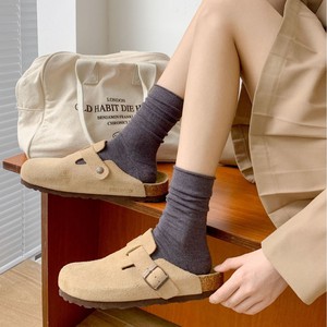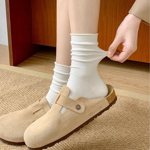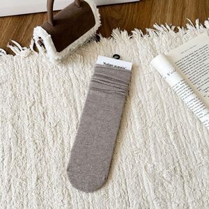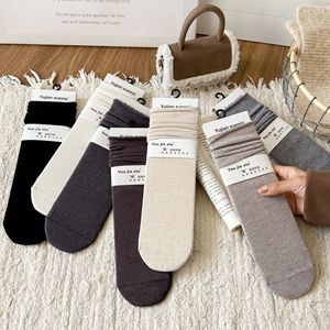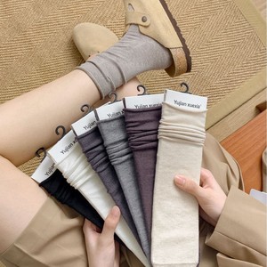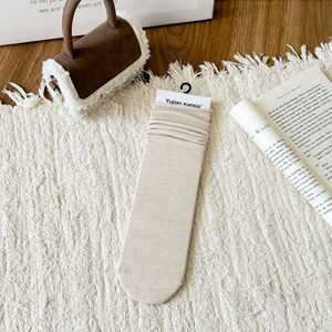 韩版美拉德系袜子女纯色卷边羊毛堆堆袜秋冬款保暖简约百搭中筒袜