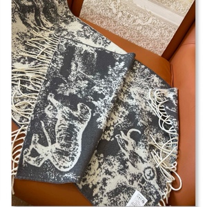 伊茹丛林动物暗纹提花羊绒围巾女款秋冬季保暖羊毛披肩外搭围脖