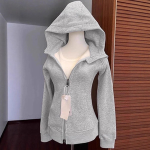 秋冬季新款外套女生卫衣修身时尚连帽短款收腰开衫运动穿搭上衣士