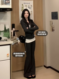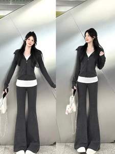 早秋休闲运动套装女新款修身收腰卫衣外套开衫微喇长裤韩系一整套