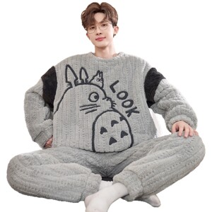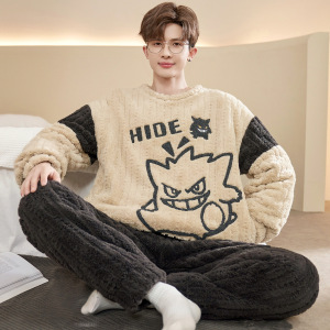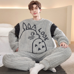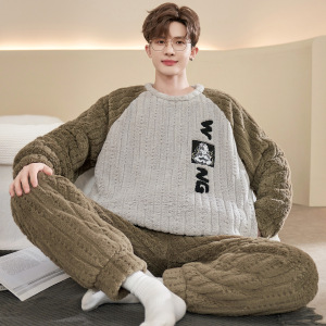 珊瑚绒睡衣男款秋冬季加绒加厚青少年初中学生大码法兰绒保暖套装