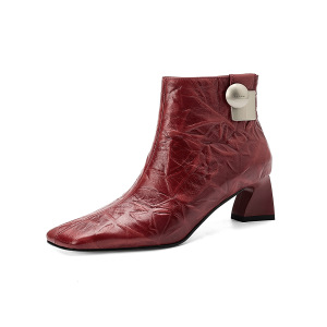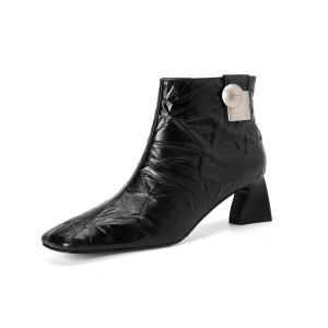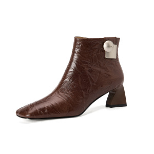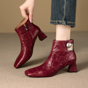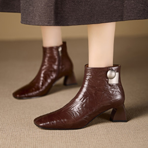 2025秋季新款法式复古英伦风方头粗跟真皮短靴女高跟女士时装靴子