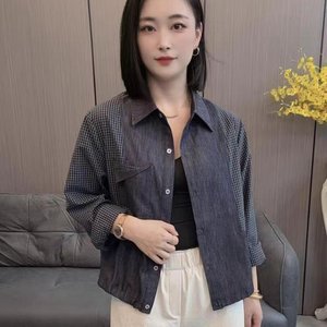 一件代发直播爆款拼接牛仔衬衫外套2025秋季新品时尚百搭宽松上衣