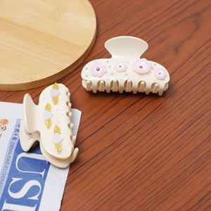 佳蕊粉色花朵亚克力抓夹小香风蝴蝶发夹小众甜美可爱浪漫鲨鱼夹抓