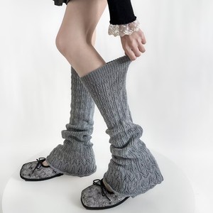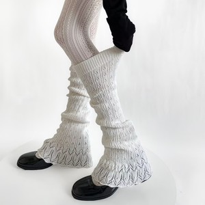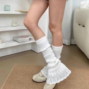 春秋镂空花纹针织堆堆袜套女白色复古微喇阔腿灰色小腿套配鲨鱼裤
