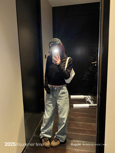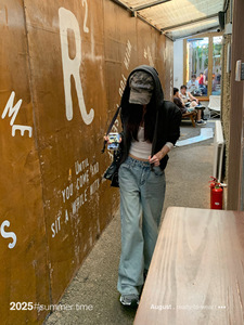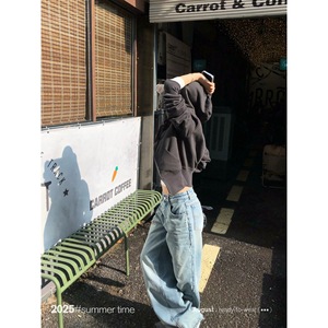 SUNONEONE 磨破宽松慵懒阔腿直筒牛仔裤女早秋季复古水洗休闲裤子