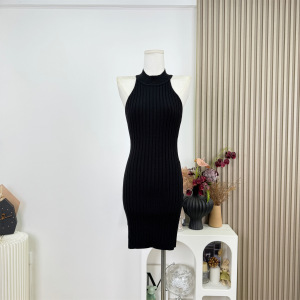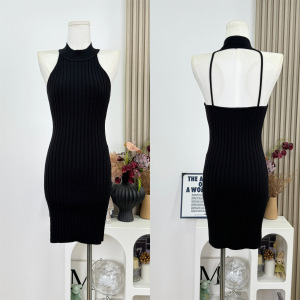 2025实拍秋季新款黑色连衣裙秋季辣妹无袖针织打底包臀短裙
