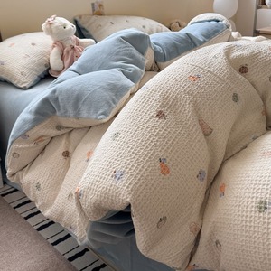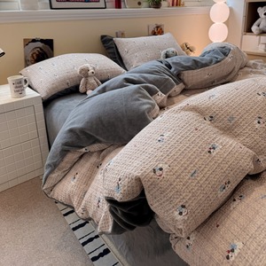 秋冬纯棉牛奶绒床上四件套全棉双层纱加绒面被套珊瑚绒床单三件套
