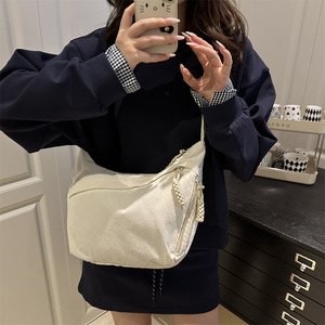 2025春季新款百搭单肩包旅行斜挎包水洗皱尼龙复古休闲轻便饺子包