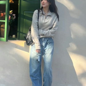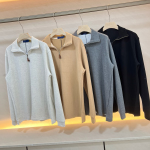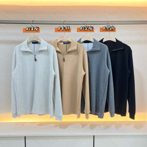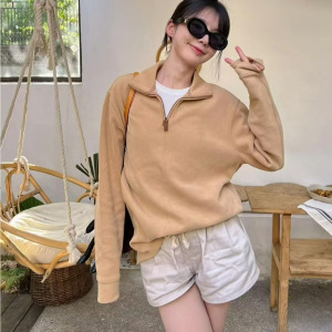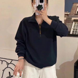 0910x7~休闲日常美式宽松潮流小马刺绣情侣款立领半拉链长袖卫衣